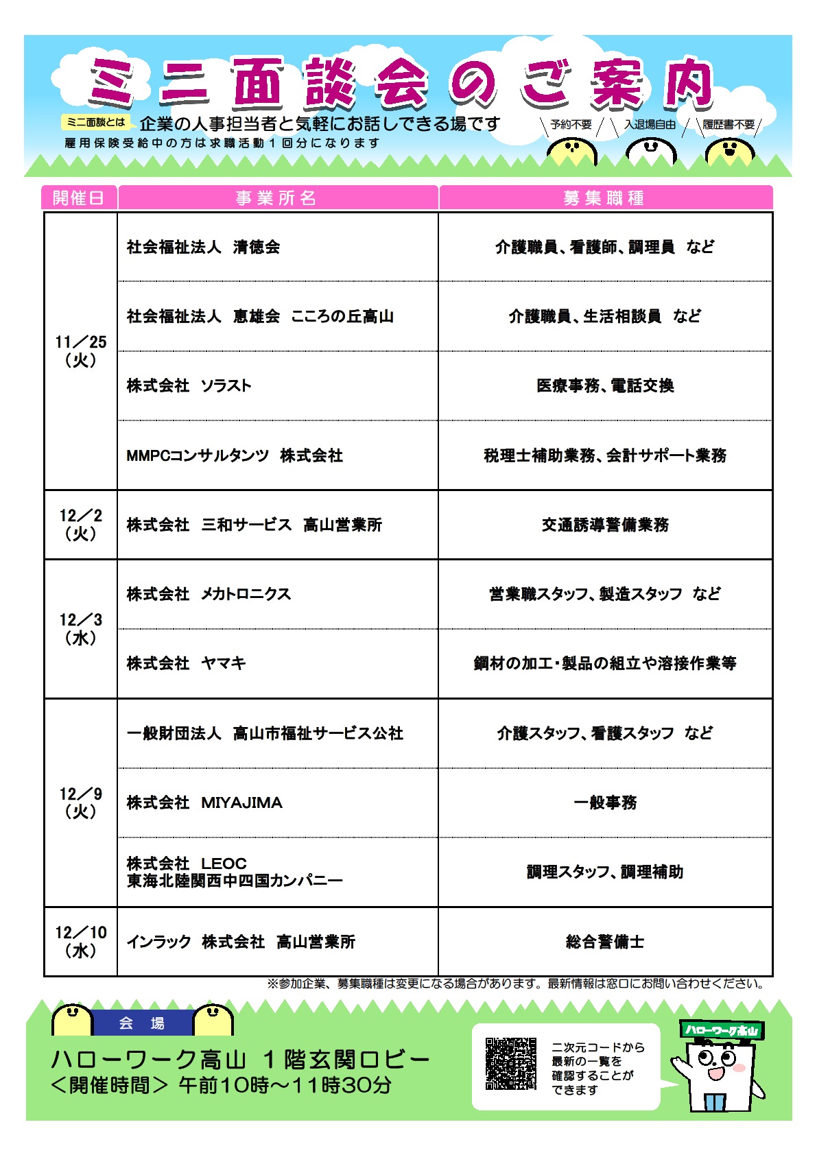 - 【ハローワーク高山】ミニ面談会のご案内 ◆11月~12月◆