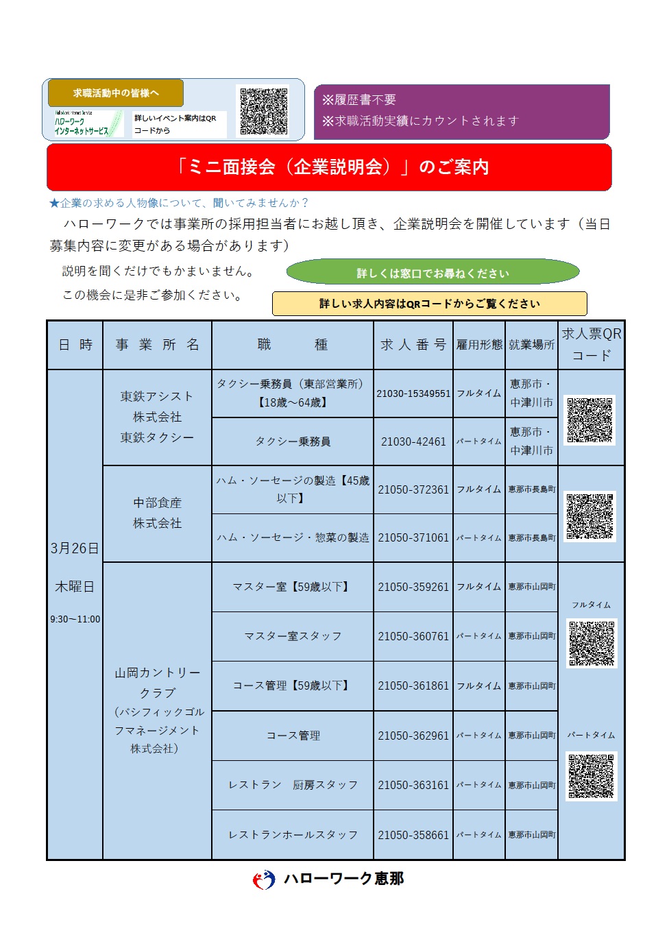 3月26日 ミニ面接会(企業説明会)&介護就職デイのご案内