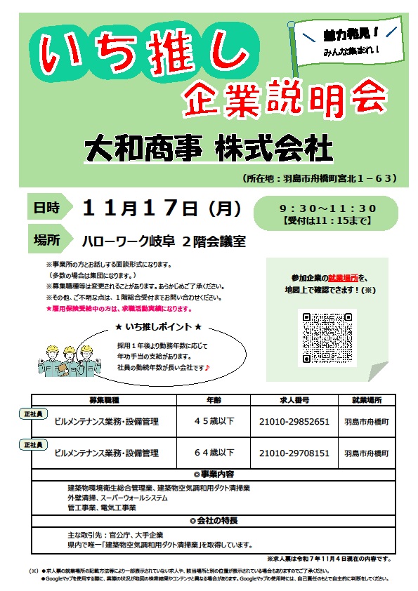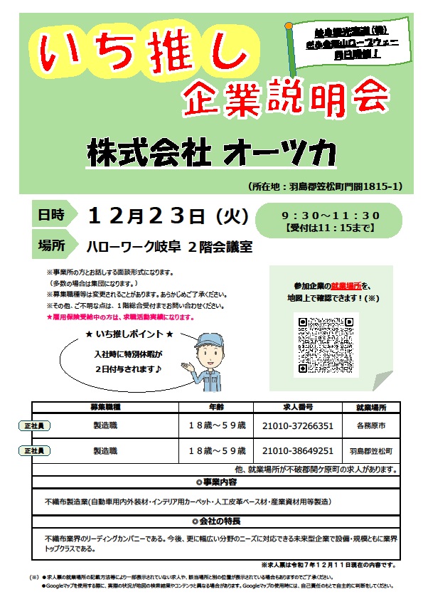 ハローワーク岐阜で「いち推し企業説明会」を開催します。