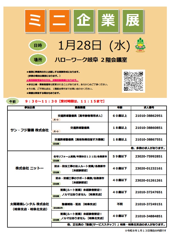 ハローワーク岐阜では「ミニ企業展」を開催します。