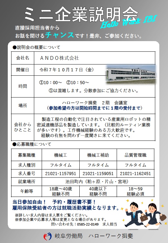 場 所 | ハローワーク揖斐 2階 会議室 | |