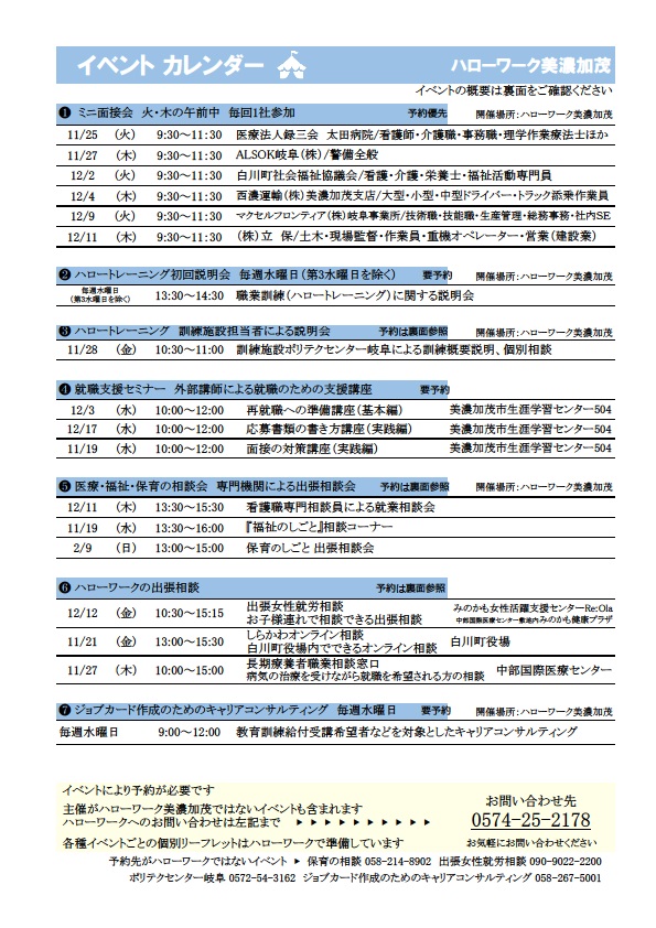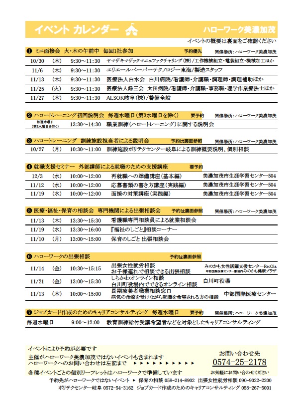 ※主催がハローワーク美濃加茂ではないイベントも含まれます。
