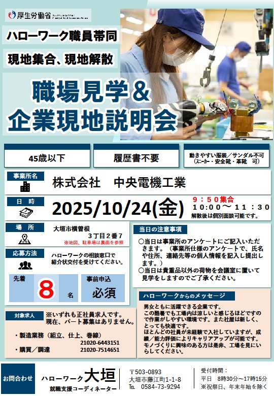 ※現地集合、現地解散となります。 ※応募を希望される方はハローワークの紹介窓口で紹介状交付を受けてください。 |