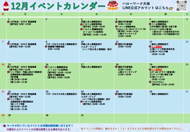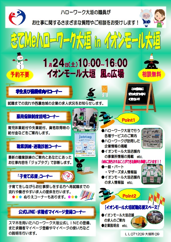 ハローワーク大垣では、ハローワークが実施する就職に関する各種支援を紹介するイベントをイオンモール大垣様のご協力により開催します。