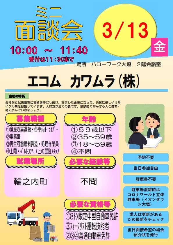 ハローワーク大垣で開催されているイベント情報です。