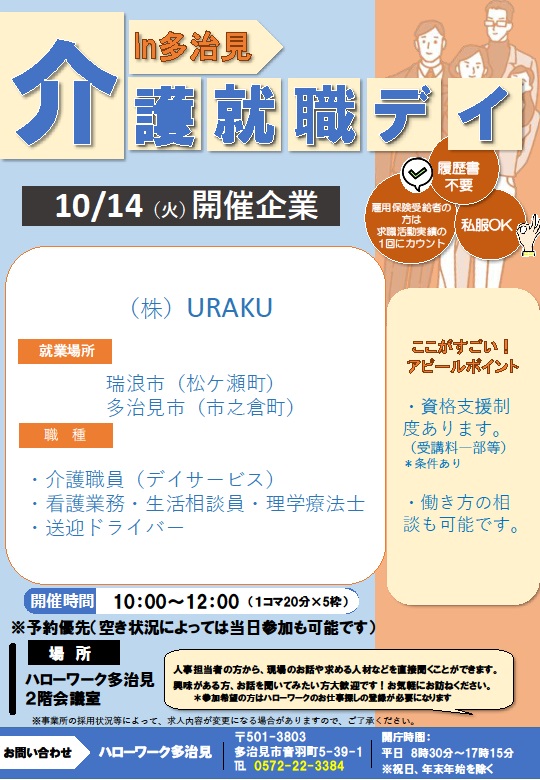 10月14日 介護就職デイ in 多治見 のご案内