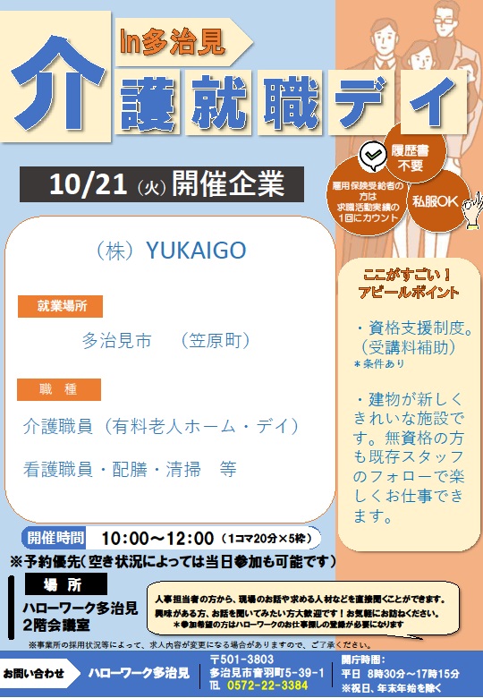 10月21日 介護就職デイ in 多治見 のご案内