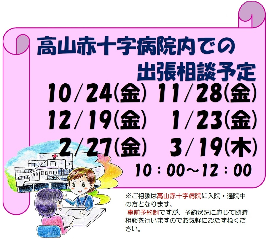 ハローワークへの来所が難しい方は高山赤十字病院へハローワークの担当者が出張相談にお伺いします