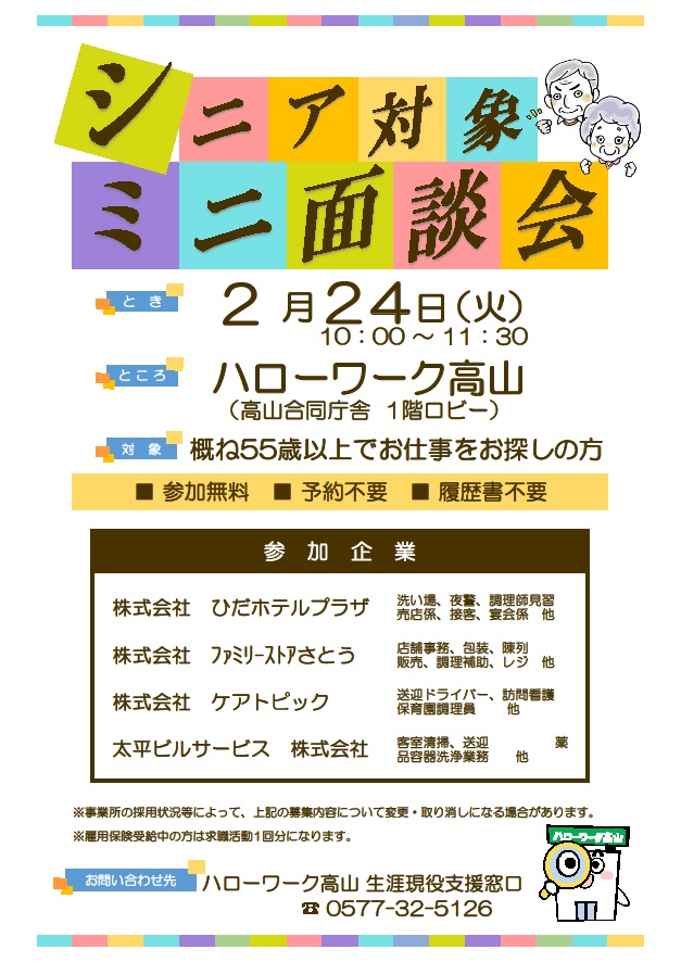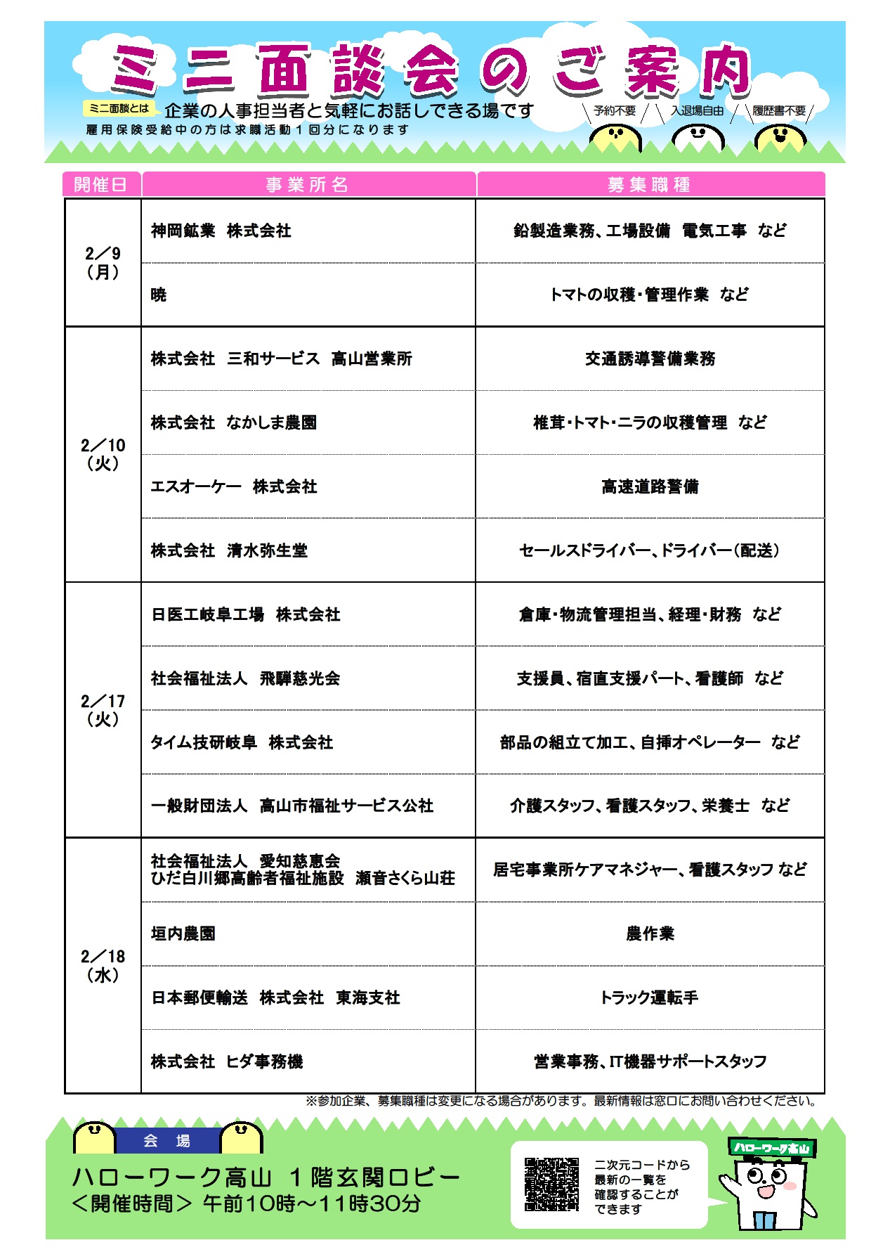 | 場 所 | ハローワーク高山 (高山合同庁舎 1階ロビー) |
