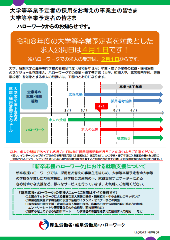 - 令和9年3月大学等卒業予定者対象の求人を令和8年2月1日より受付開始!(ハローワーク窓口は2月2日(月)より受付開始)