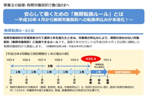 安心して働くための「無期転換ルール」とは (228KB; PDFファイル) ←くわしくはこちらをクリック