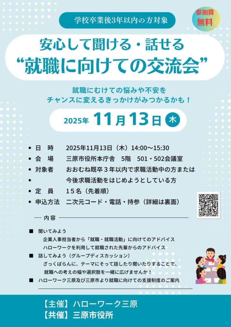 【三原所】安心して聞ける・話せる「就職に向けての交流会」のご案内