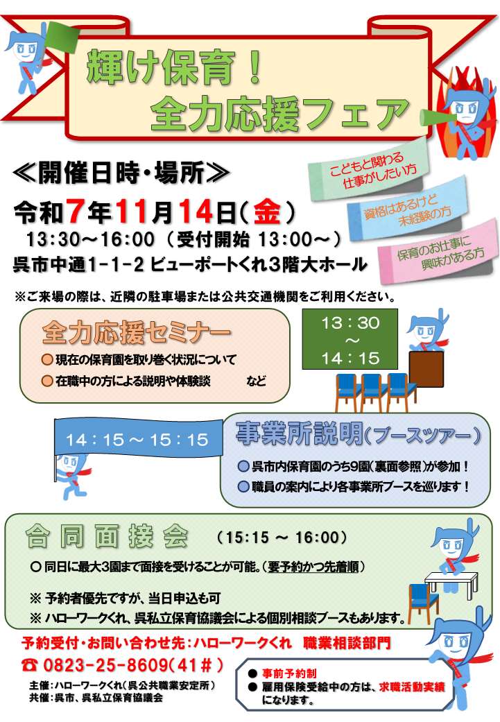 【ハローワークくれ】 輝け保育!全力応援フェア
