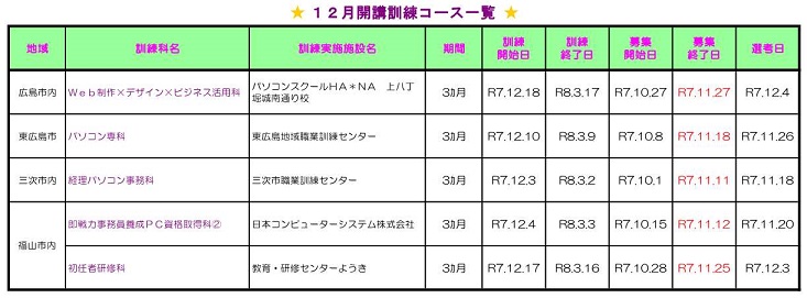 3. 公共職業訓練(広島県委託訓練)のご案内