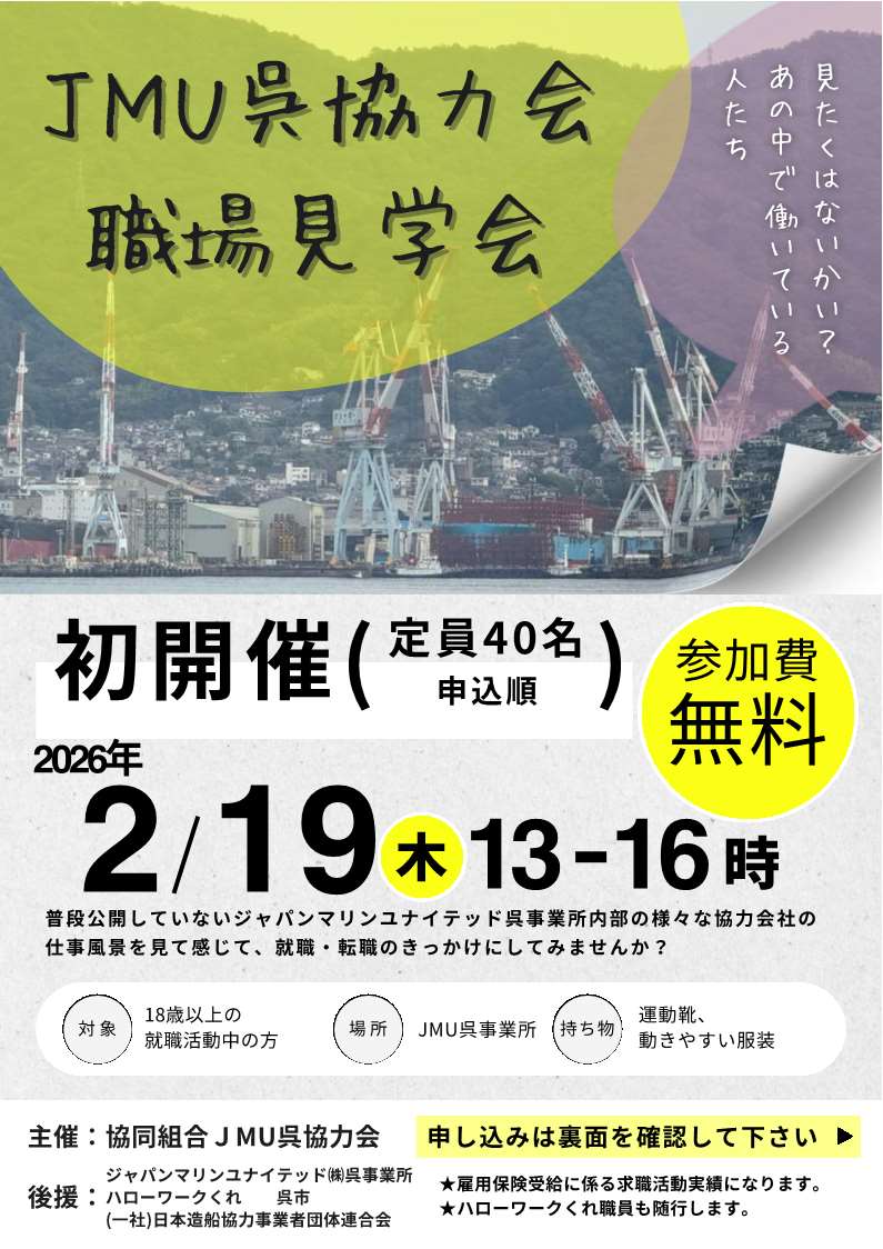 【参加者受付中!】JMU 呉協力会 職場見学会