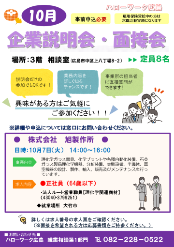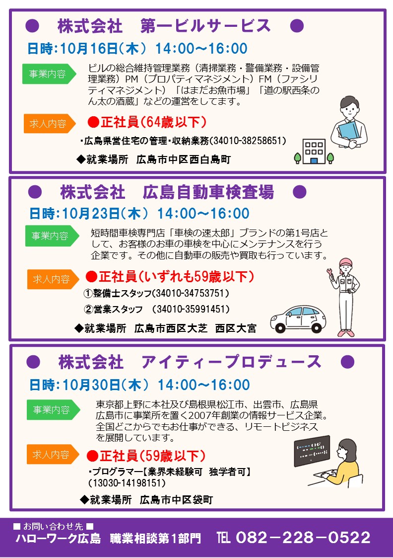 詳細については、ハローワーク広島職業相談第1部門