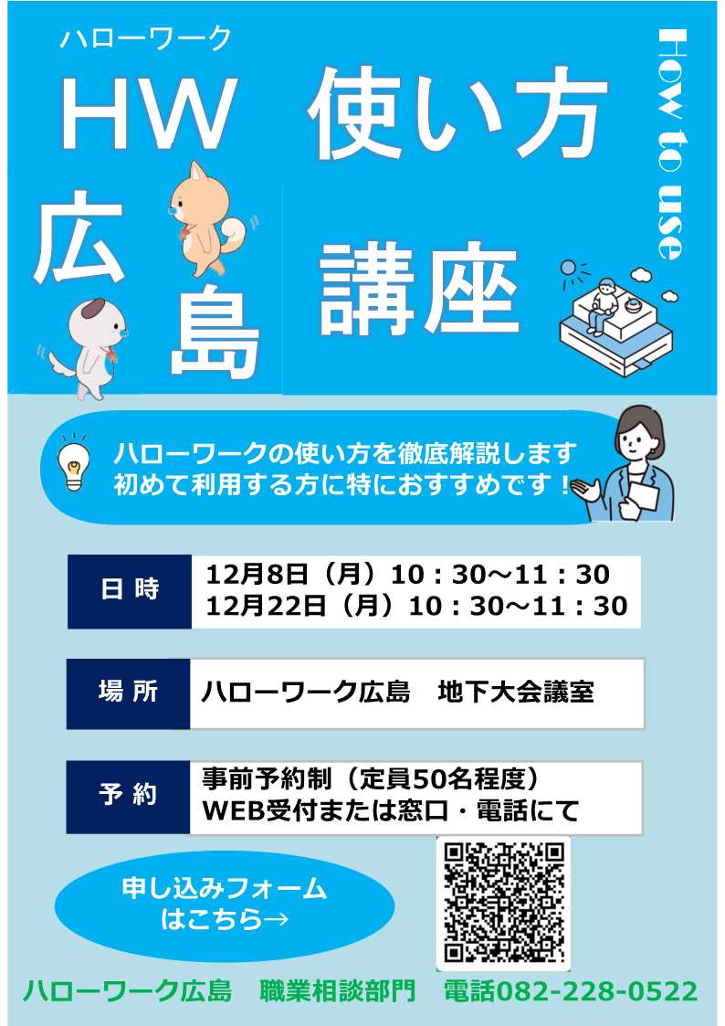 | 【ハローワーク使い方講座】 ハローワーク広島を効果的に利用していただくための 使い方を徹底解説します! |