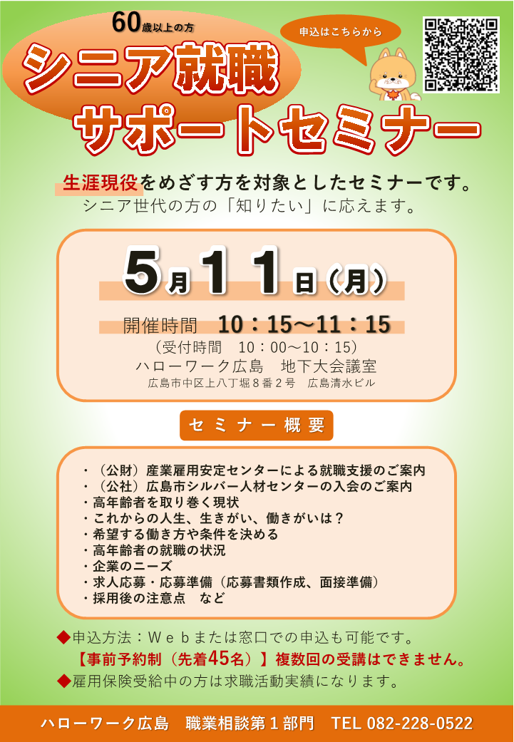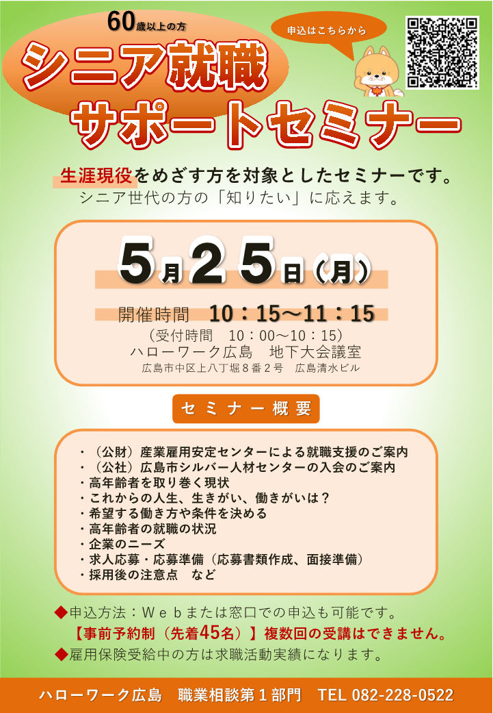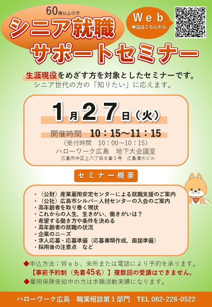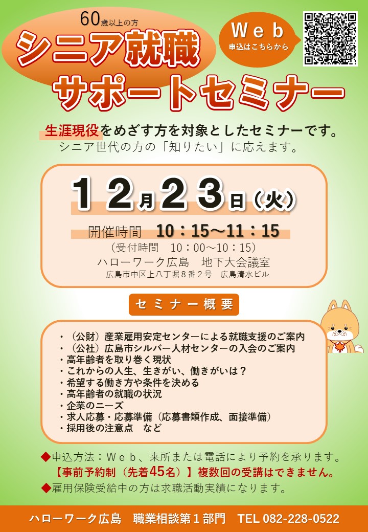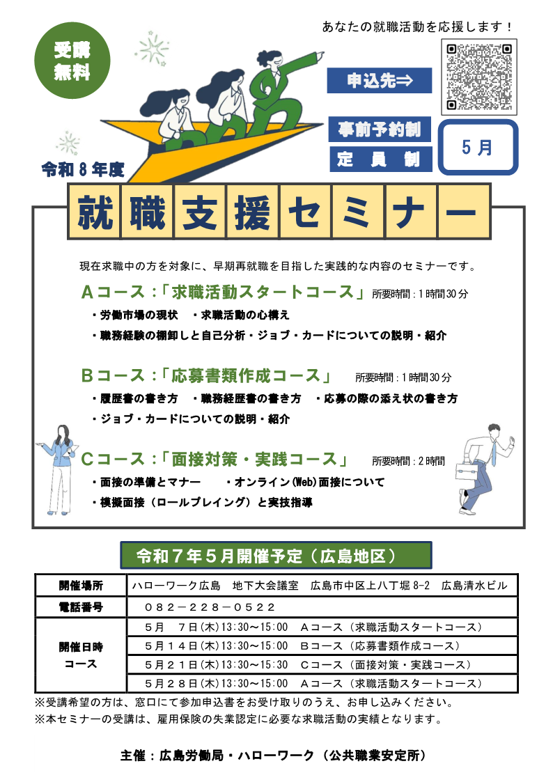 ハローワーク広島で開催する各種セミナーのご案内です。