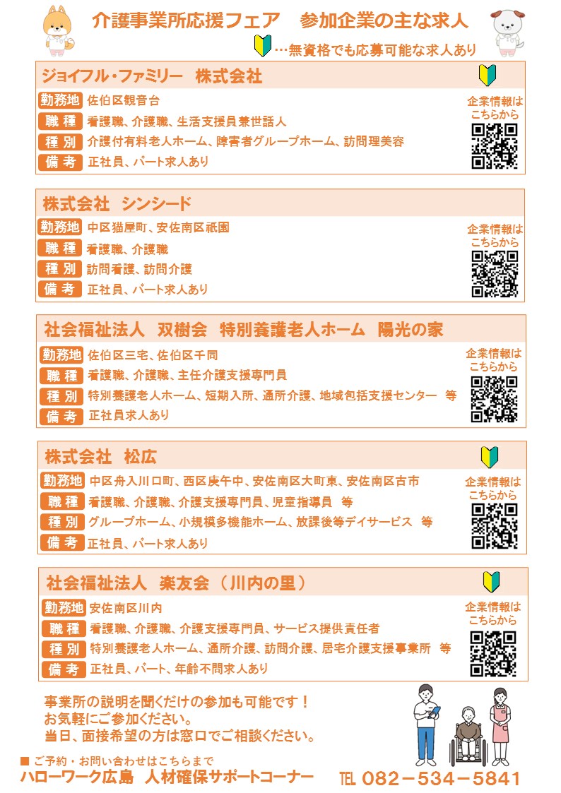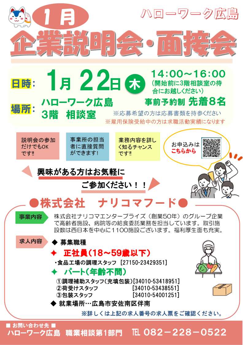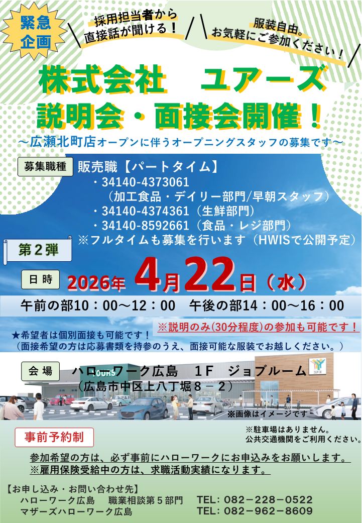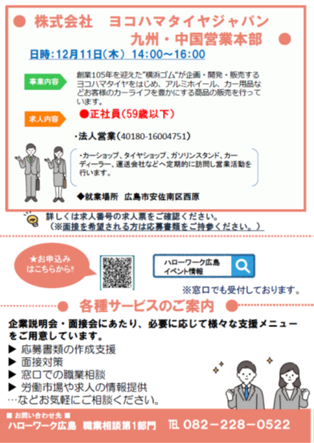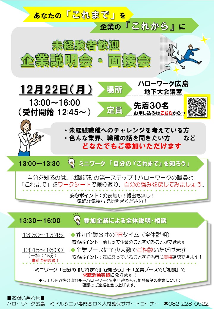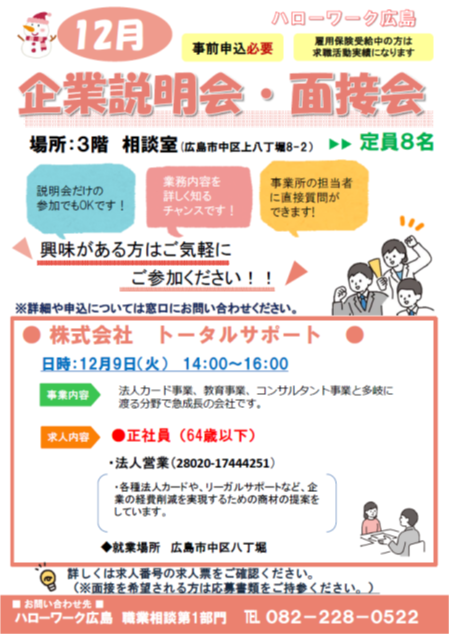 ハローワーク広島で開催する企業説明会・面接会のご案内です。