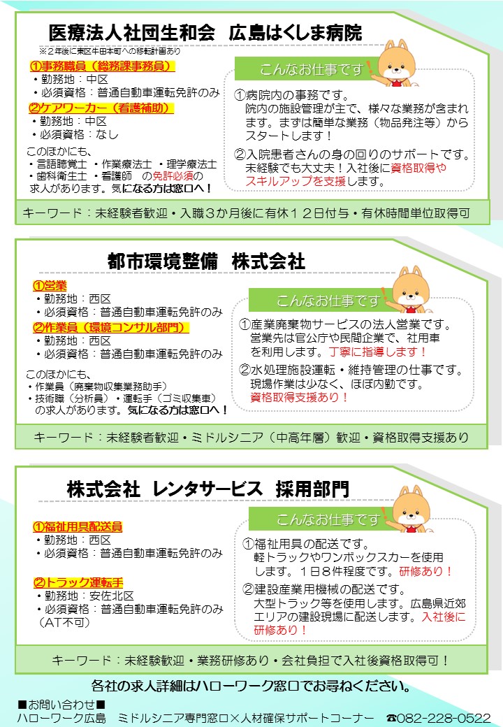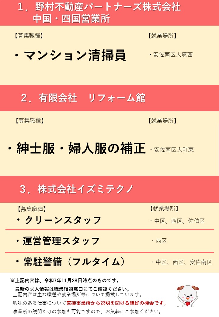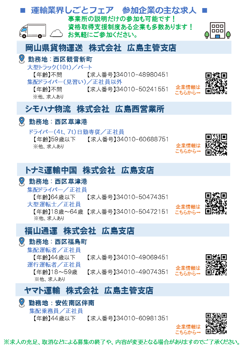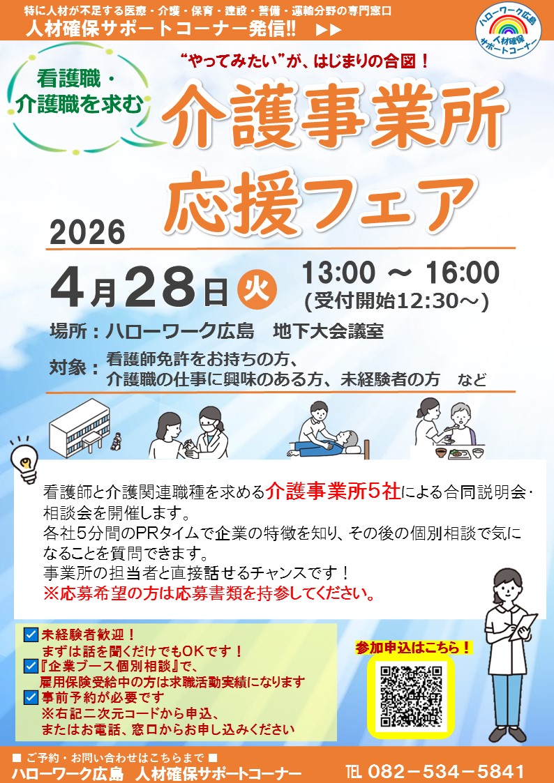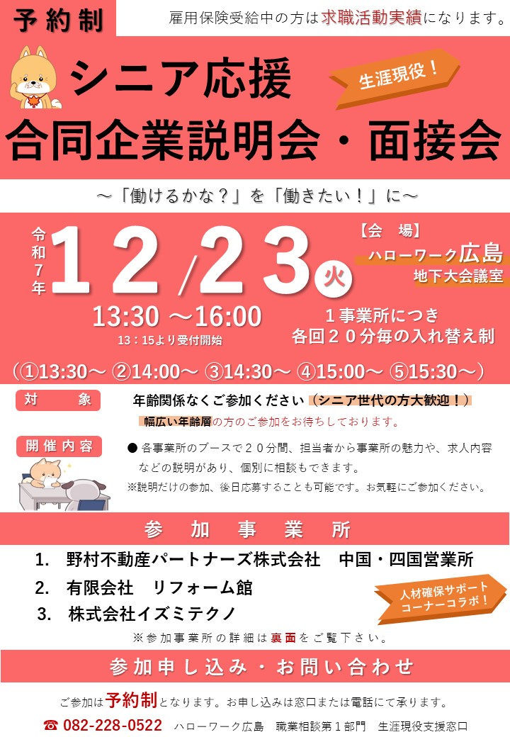 ハローワーク広島で開催する企業説明会・面接会のご案内です。