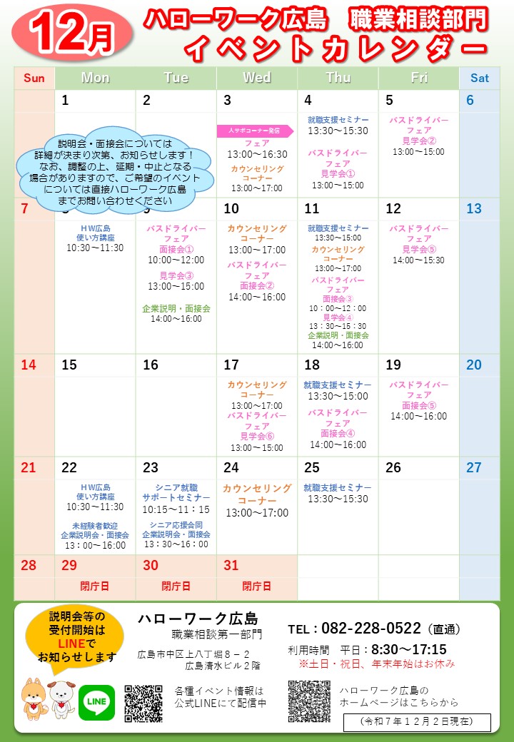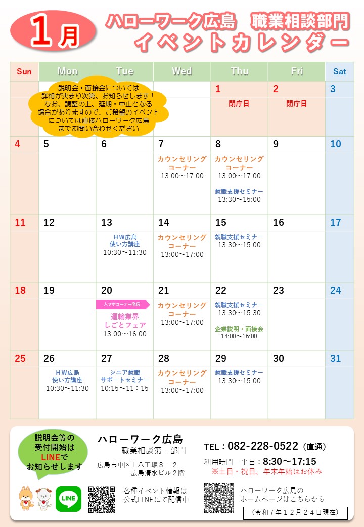 ハローワーク広島で開催するイベント、セミナー等のご案内です。