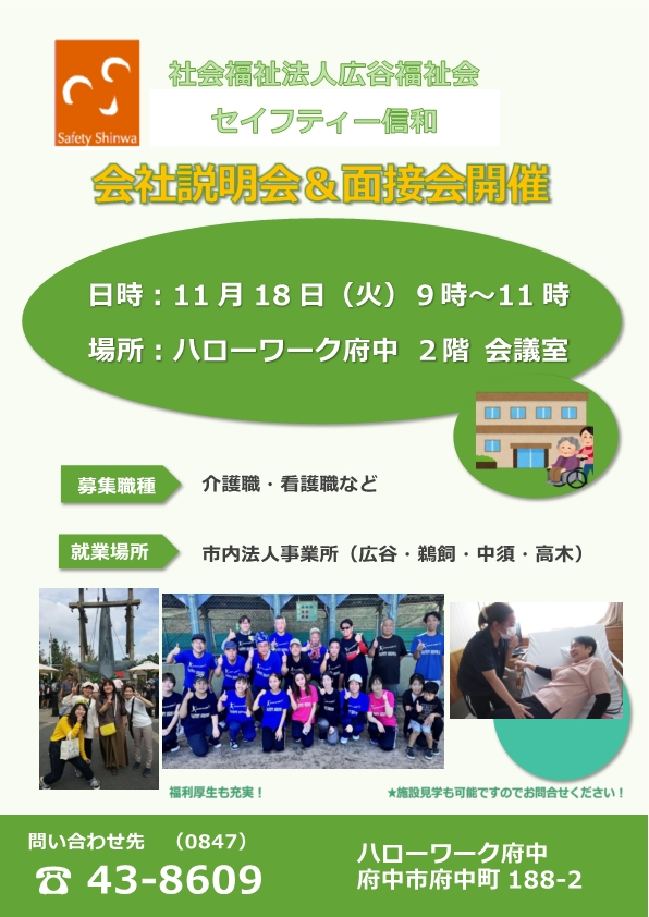 【2社合同会社説明会】(社福)桜風会・(株)備後会※職場訪問時の画像等あり