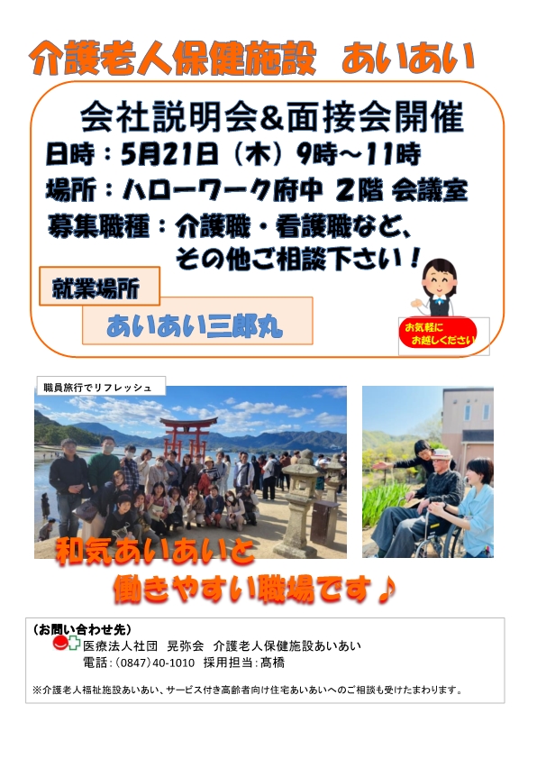【会社説明会】 医療法人社団 晃弥会 介護老人保健施設 あいあい