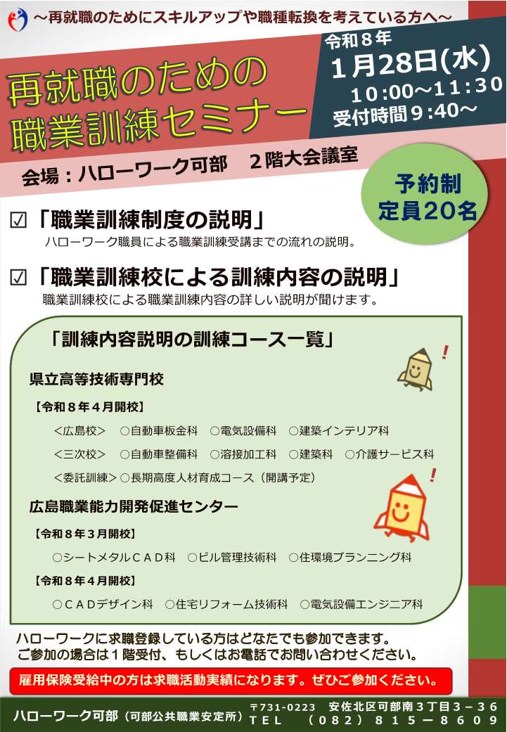 再就職のためにスキルアップや職種転換を考えている方を対象としたセミナーです(予約制)