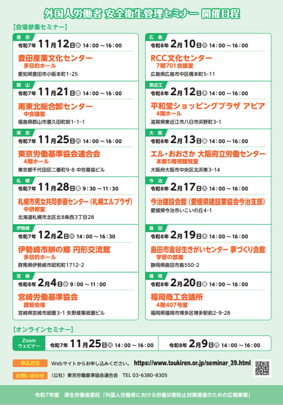 - 令和7年度外国人労働者安全衛生管理セミナー開催のお知らせ