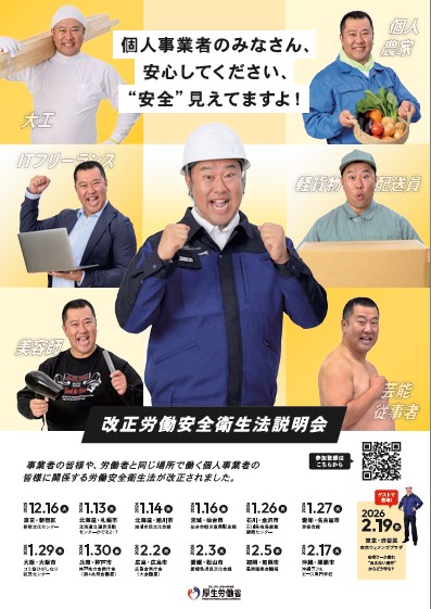 個人事業者等に係る改正労働安全衛生法の説明会が開催されます。