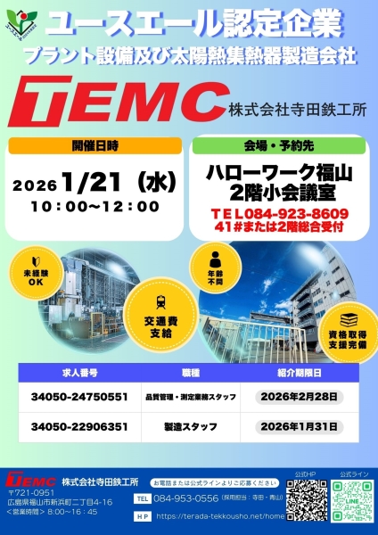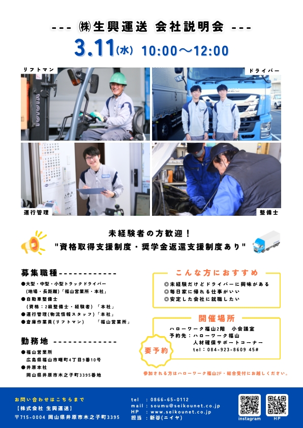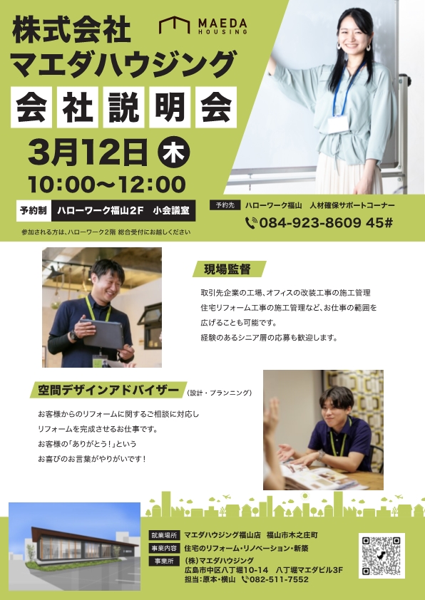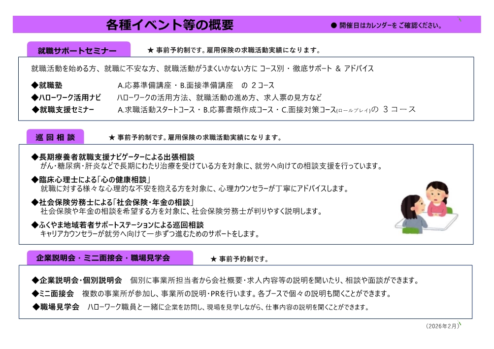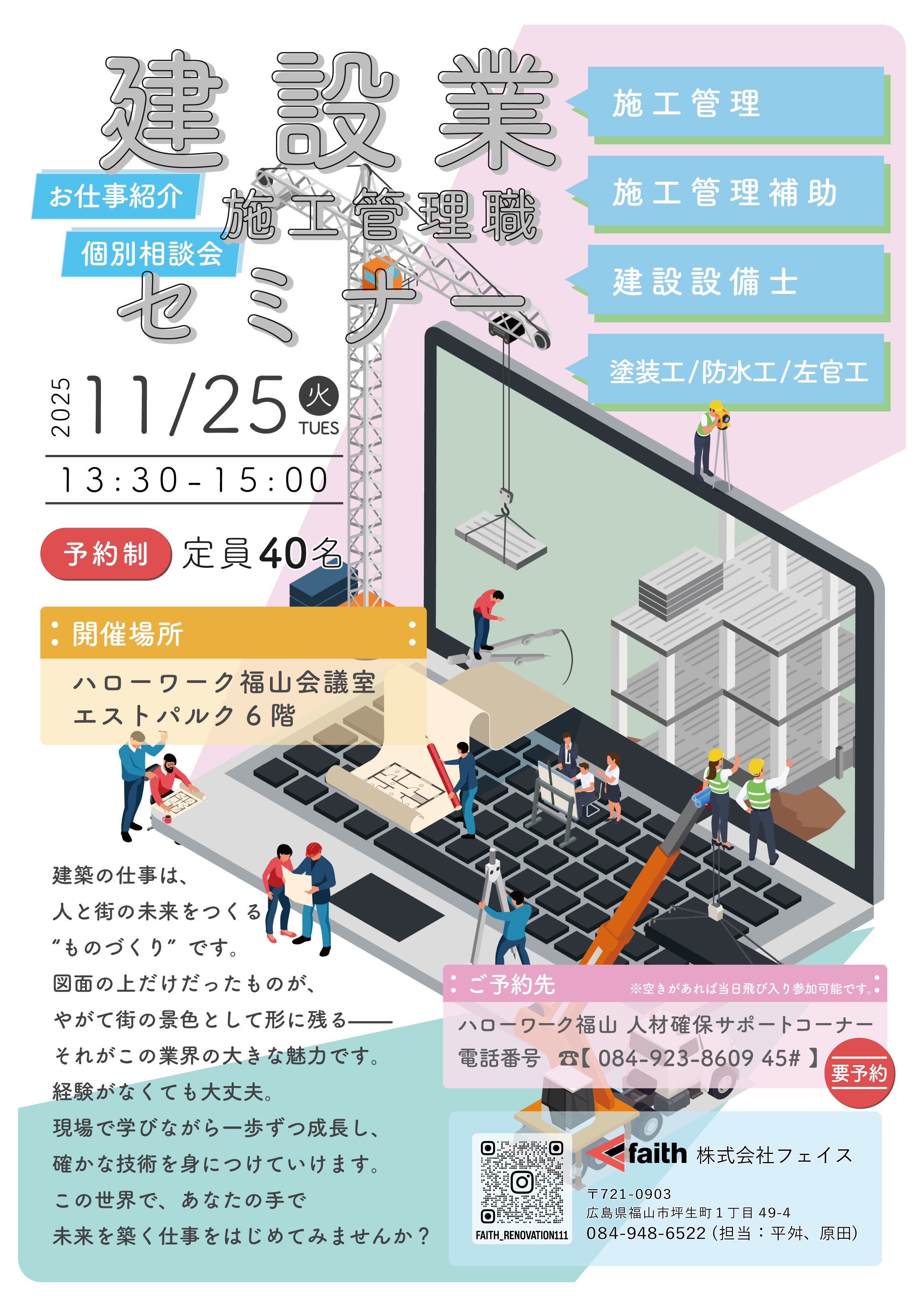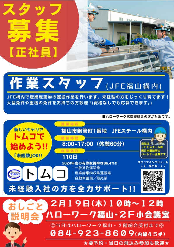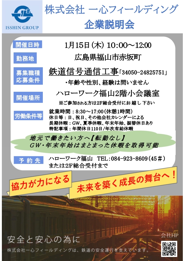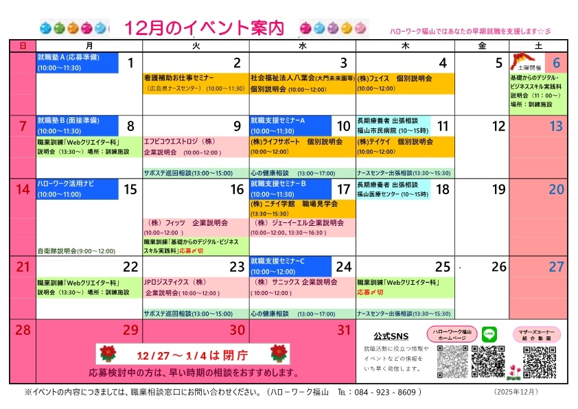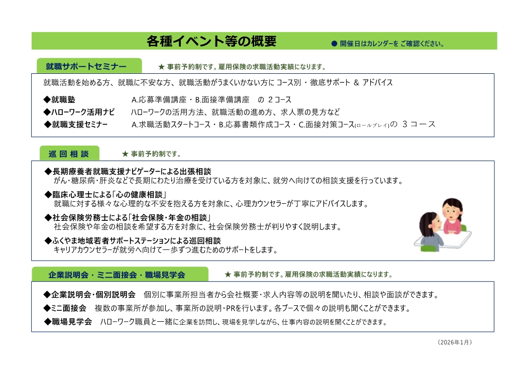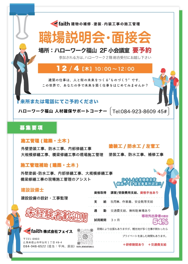 イベントについての質問やイベント開催を希望する事業所様は下記までご連絡ください。 【医療・福祉・介護・保育・建設・警備・運輸分野の事業所】 ハローワーク福山人材確保サポートコーナー 📞084-923-8609(45#) 【上記以外の分野の事業所】 ハローワーク福山事業所サービス部門 📞084-923-8609(31#)