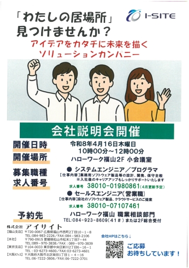 | 【企業説明会】 株式会社アイサイト福山支店 |