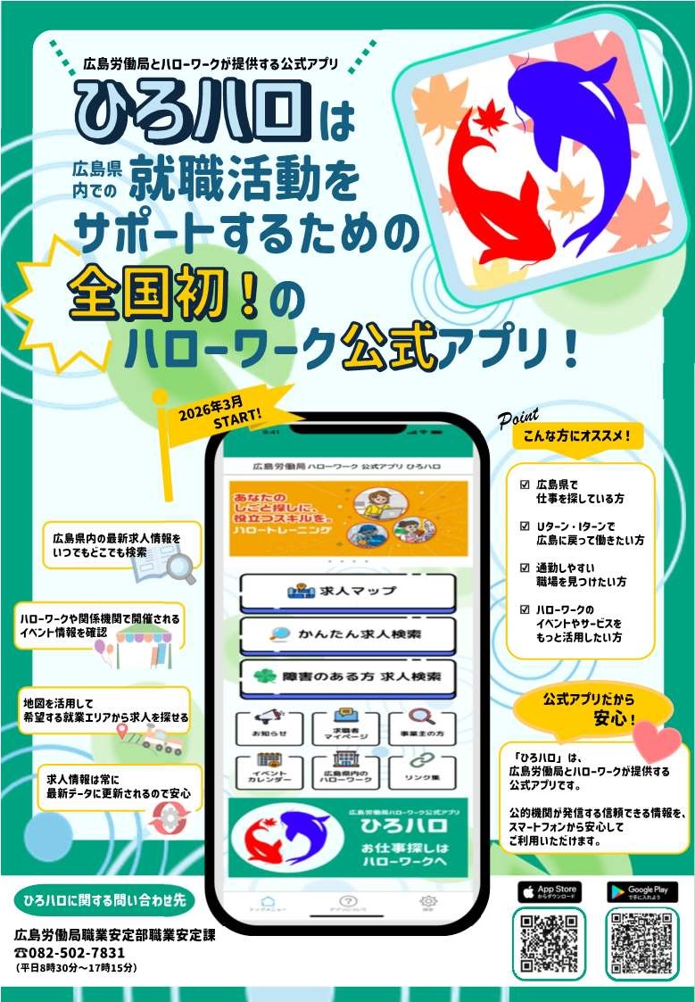 - 全国初!広島労働局・ハローワーク公式アプリ「ひろハロ」をリリースしました