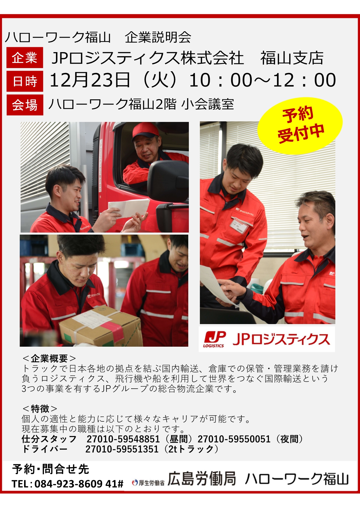 【企業説明会】JPロジスティクス株式会社 福山支店