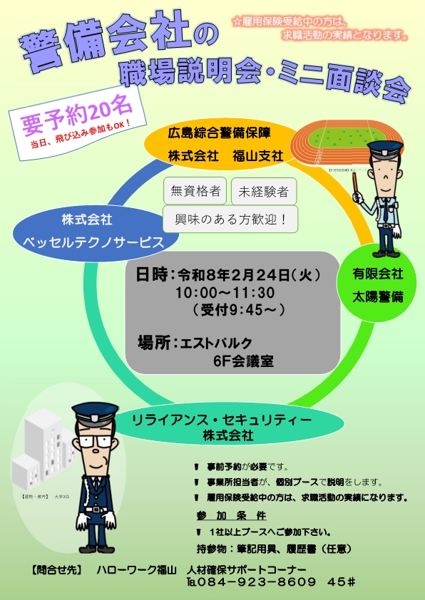 【合同面談会】警備会社の職場説明会・ミニ面談会