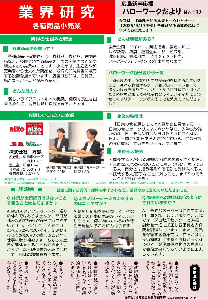 「業界を知る本音トークセミナー」※の内容をまとめた「ハローワークだより」をご覧いただけます。