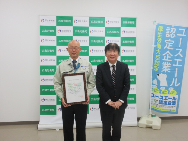 交付式の状況(左側:木家ハローワーク広島所長 右側:池浦社長)