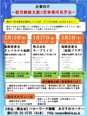 【企業向け】就労継続支援A型事業所見学会のご案内(函館)