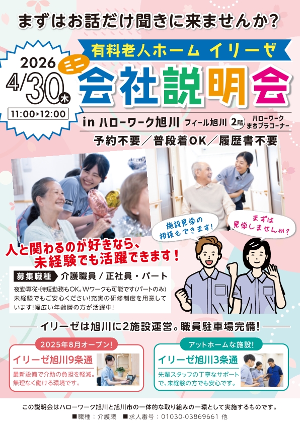 (まちプラ)HITOWAケアサービス株式会社 有料老人ホーム イリーゼ ミニ会社説明会《介護職員 他》