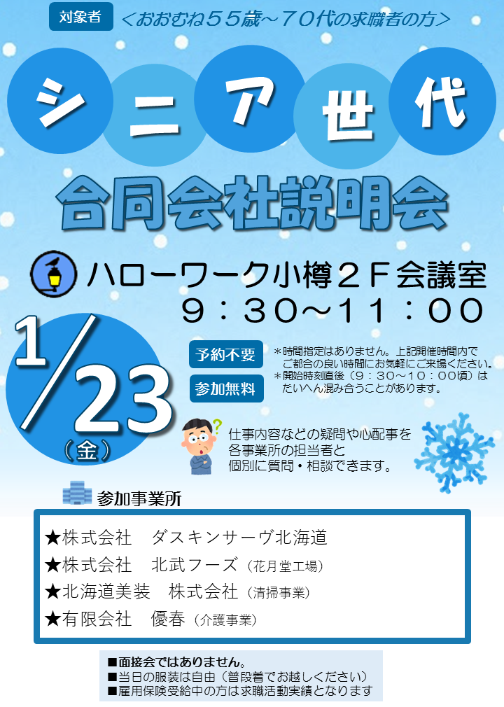 場所 小樽市色内1丁目10番15号 ハローワーク小樽2F会議室