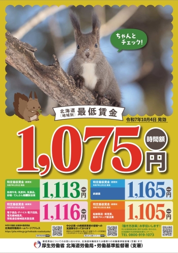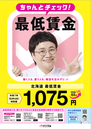 北海道内の事業場で働くすべての労働者(臨時、パートタイマー、アルバイト等を含む。)及びその使用者に適用される北海道最低賃金が次のとおり改定されました。