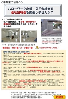 詳細につきましては、ハローワーク小樽の会社説明会担当までご相談・お問い合わせください。