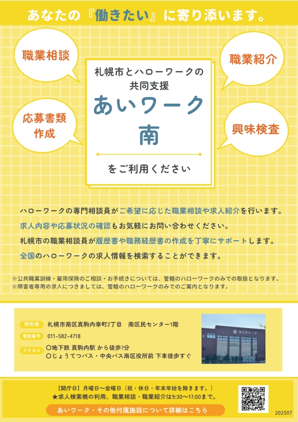 あいワーク南は南区民センターでお仕事相談・求人の紹介を受けることができる施設です。