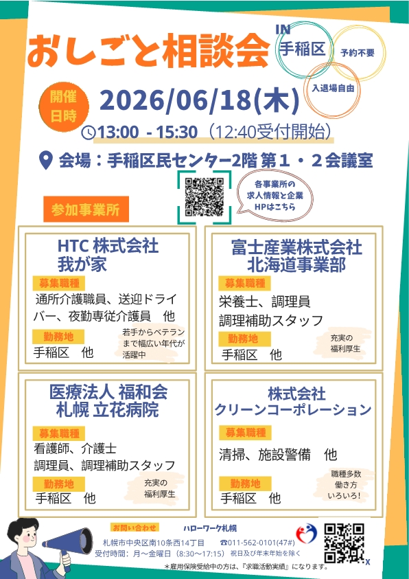 【おしごと相談会 IN手稲区】開催のお知らせ