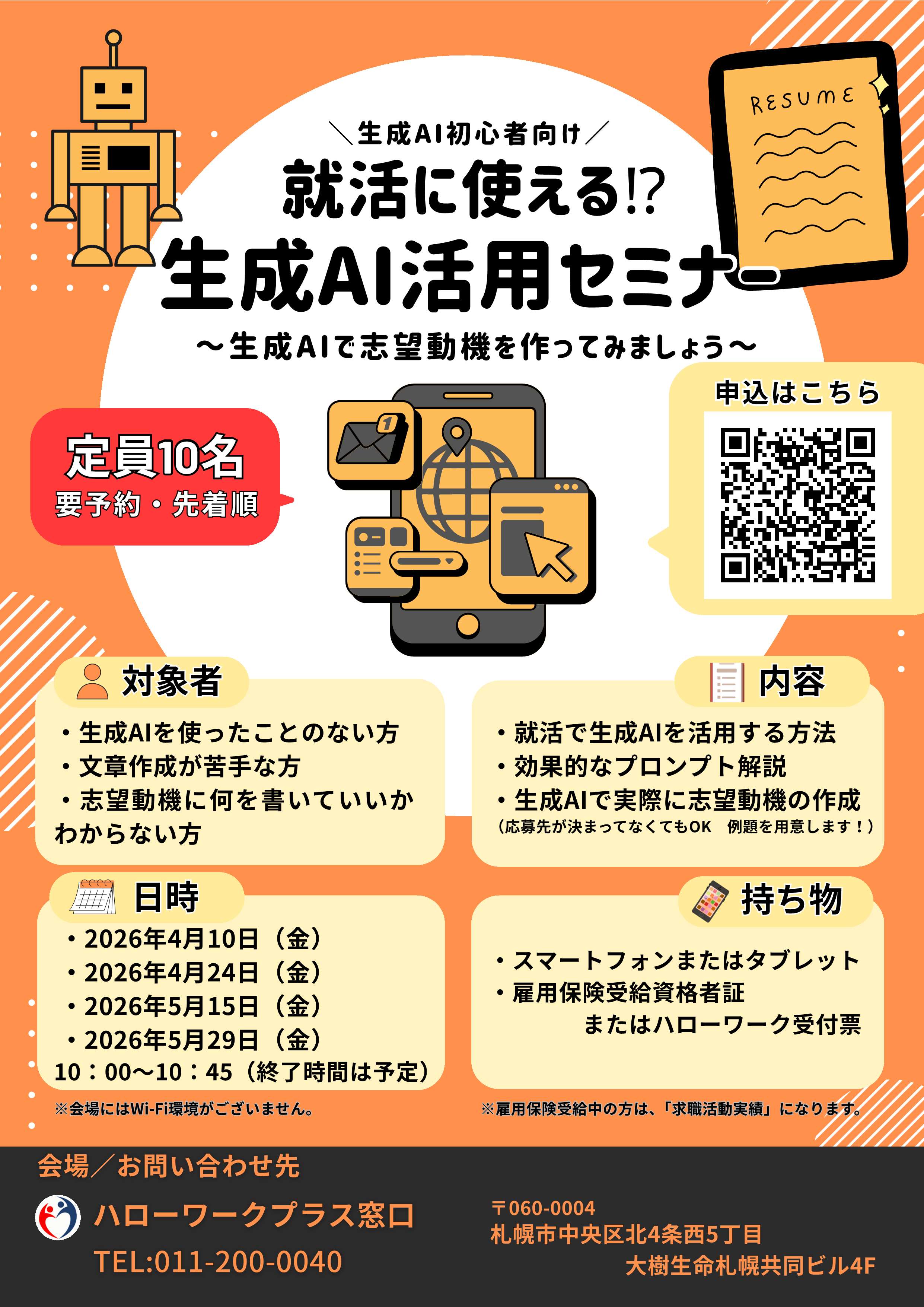 「就活に使える!?生成AI活用セミナー」の開催について【ハローワークプラス窓口】