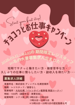 大丸札幌バレンタイン催事会場にて短期(1/15~2/15)レジスタッフを募集しています🍫
