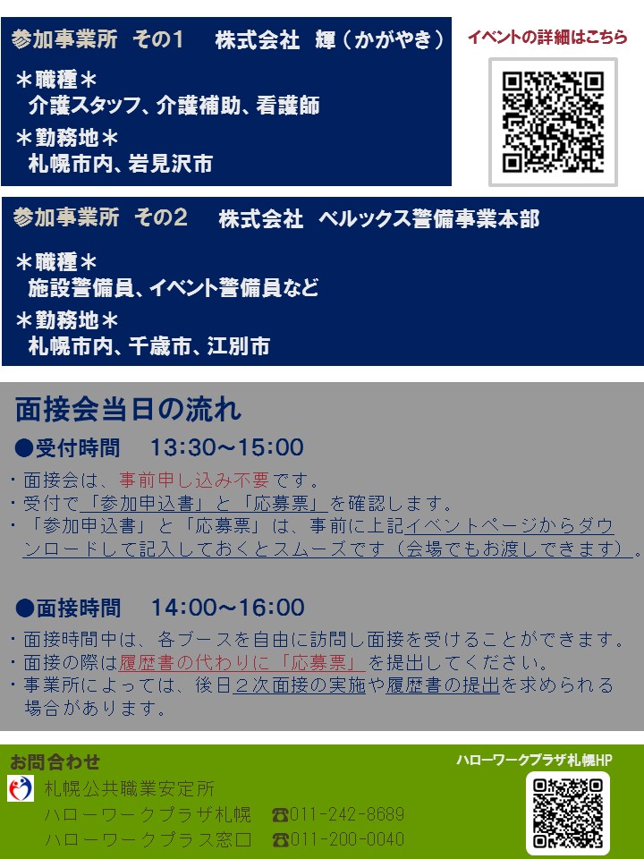 ※臨時閉庁になる可能性があります。詳しくはハローワークプラザ札幌公式HPでご確認ください。