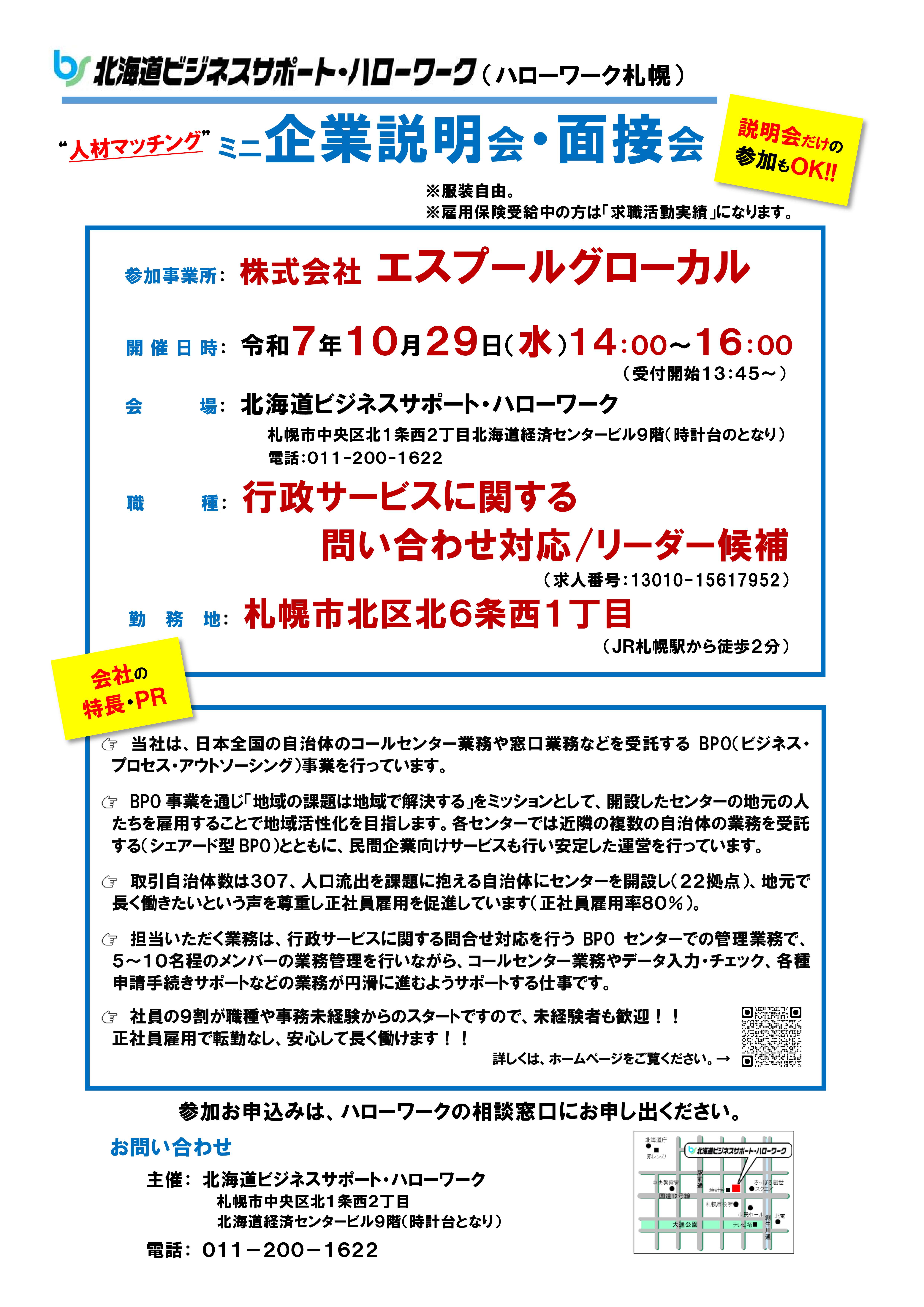 北海道ビジネスサポート・ハローワークと、公益財団法人北海道中小企業総合センターでの各種支援を一体的に実施し、サービスをワンストップで提供。