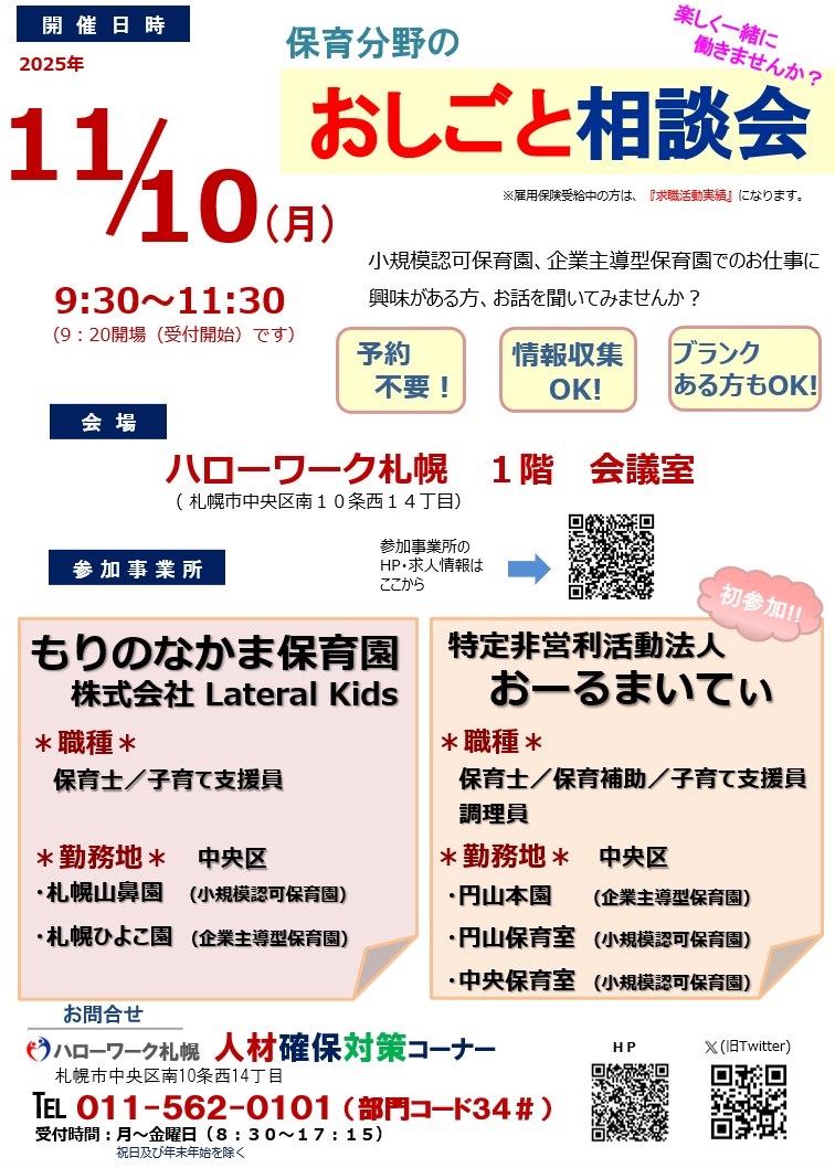 11/10(月)保育分野のおしごと相談会