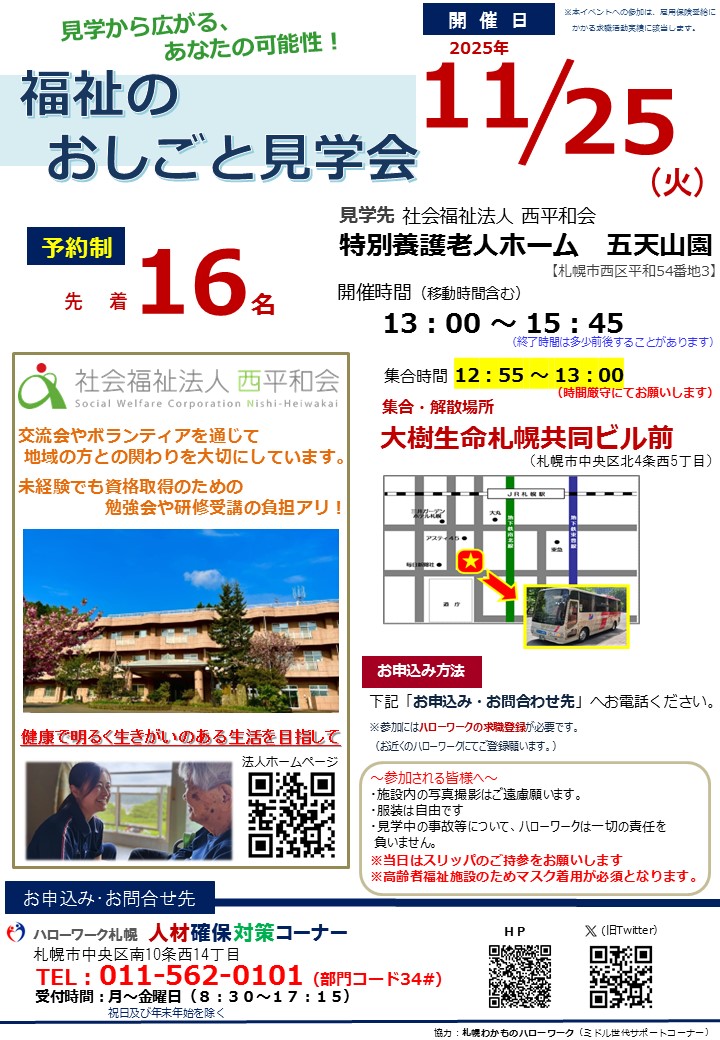 11月 5 日(水) 会場集合 ハローワーク札幌(※2)